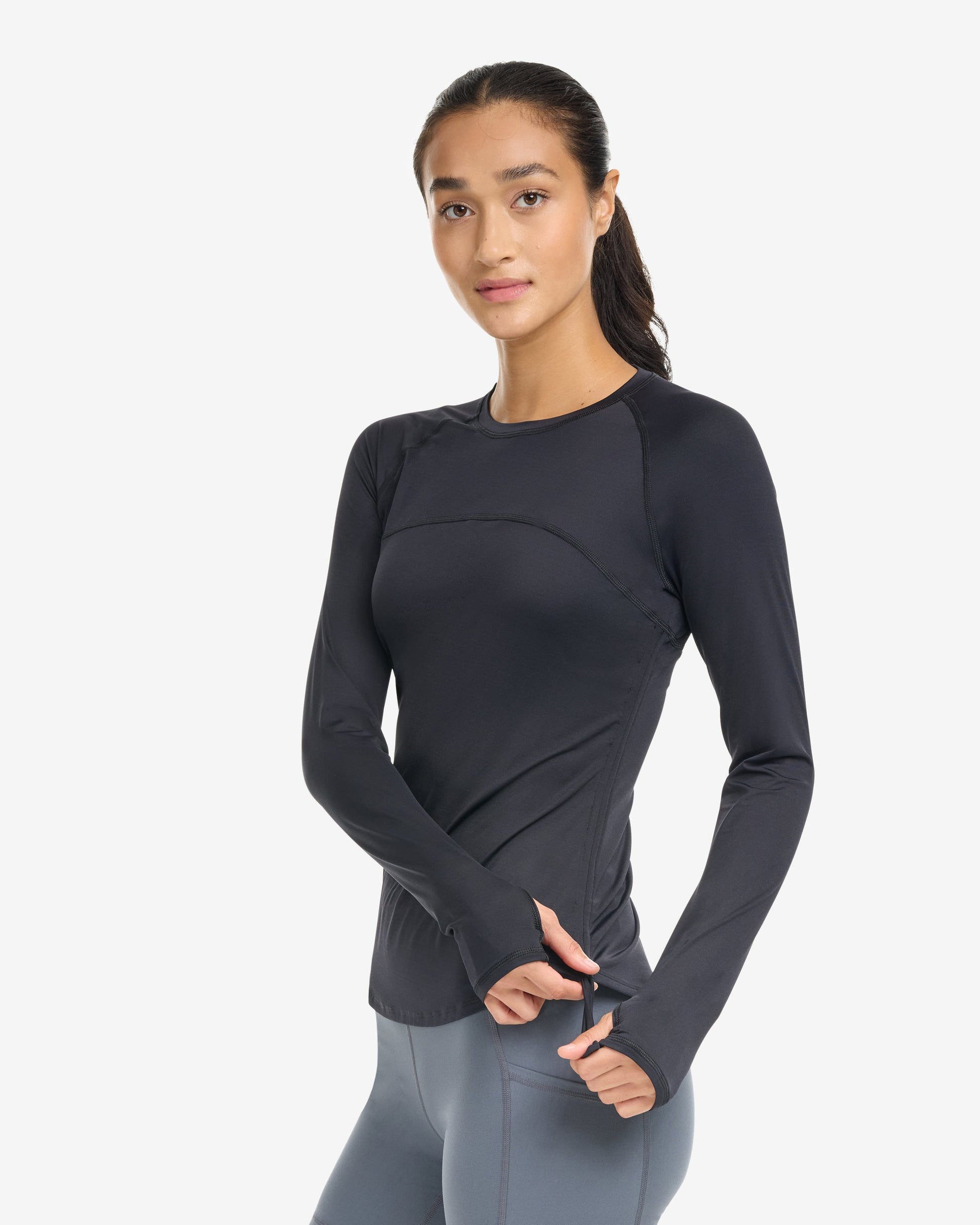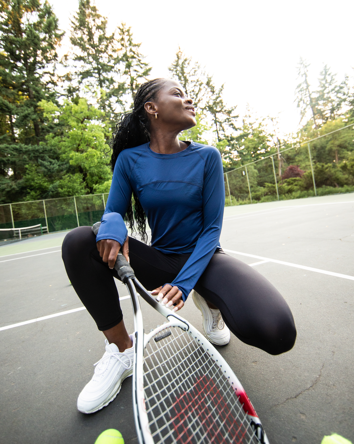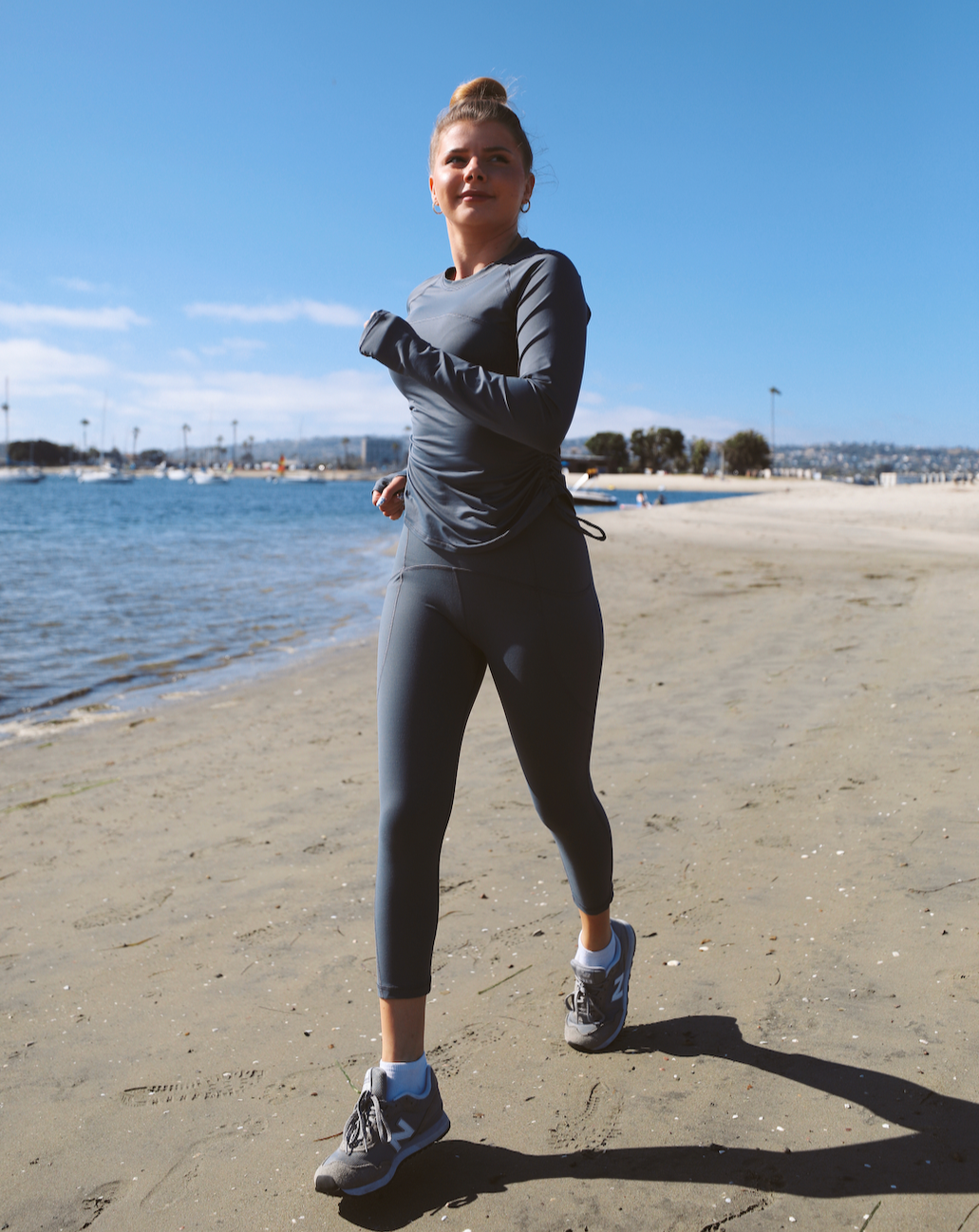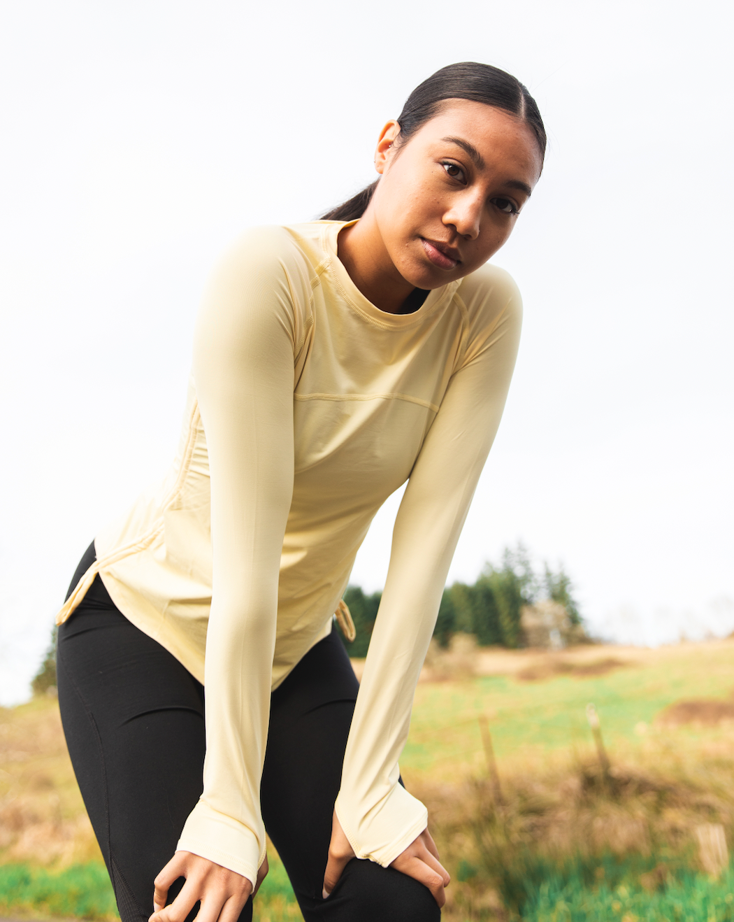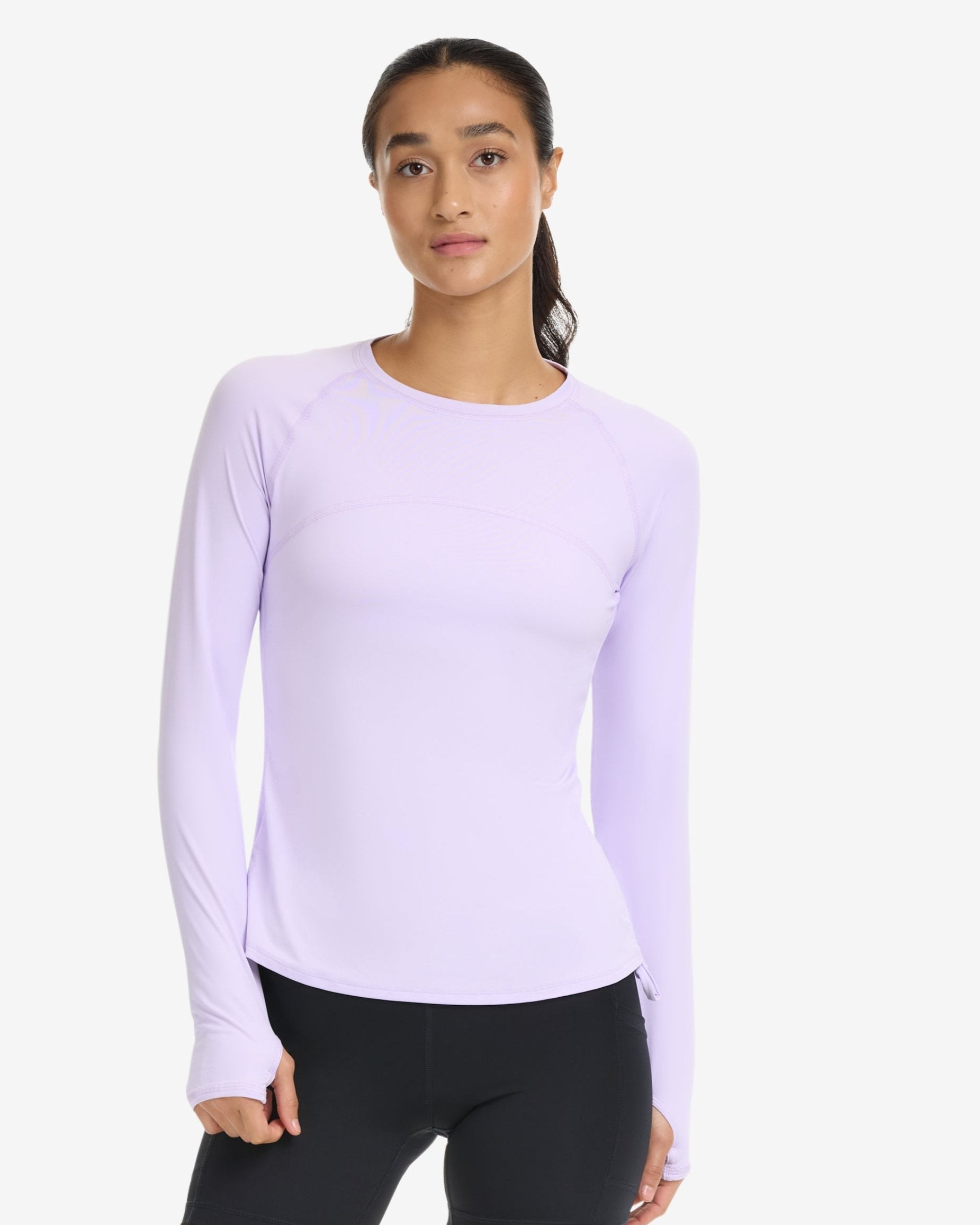 A staple piece to have as part of your athleisure wardrobe. This crew long sleeve UPF Shirt has drawstring for adjustable length. The side ruching allows you to wear the shirt as long or as short as you like. This indispensable, multi-functional piece looks great with joggers, pants or BloqUV tights and can also serve as a swim shirt or rash guard. Enjoy SPF protection while playing tennis, pickle ball, paddle boarding, boating, running, swimming, walking or shopping.
