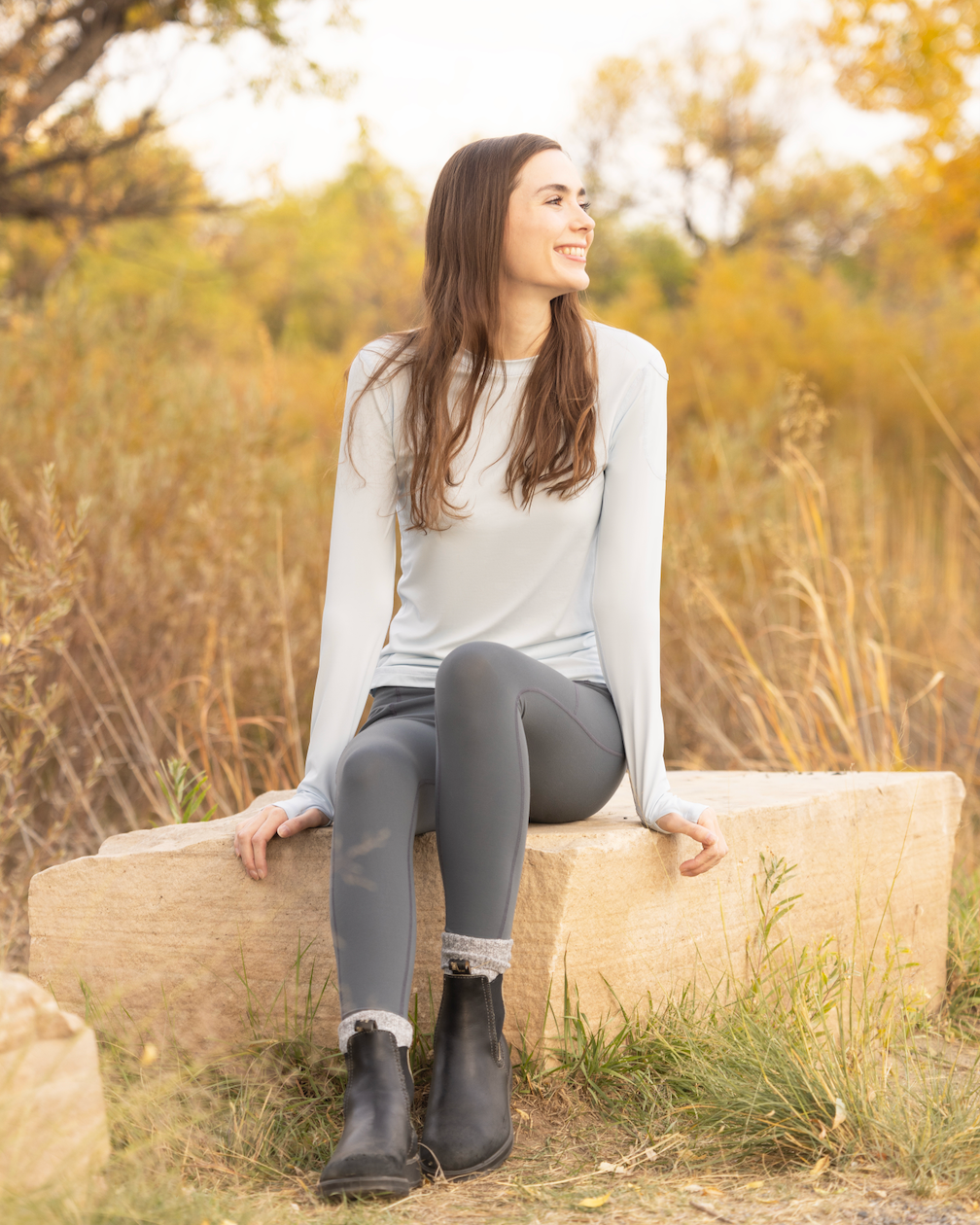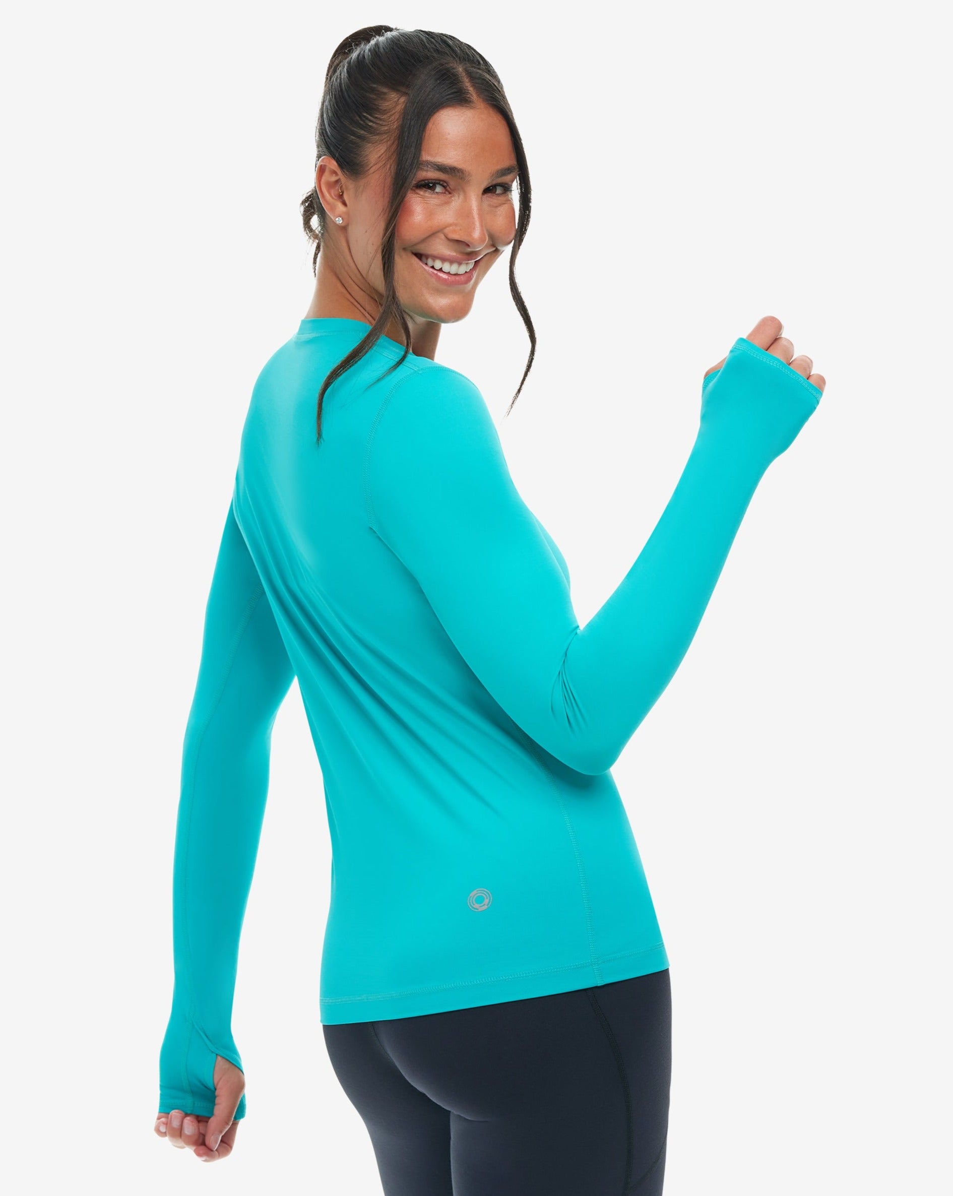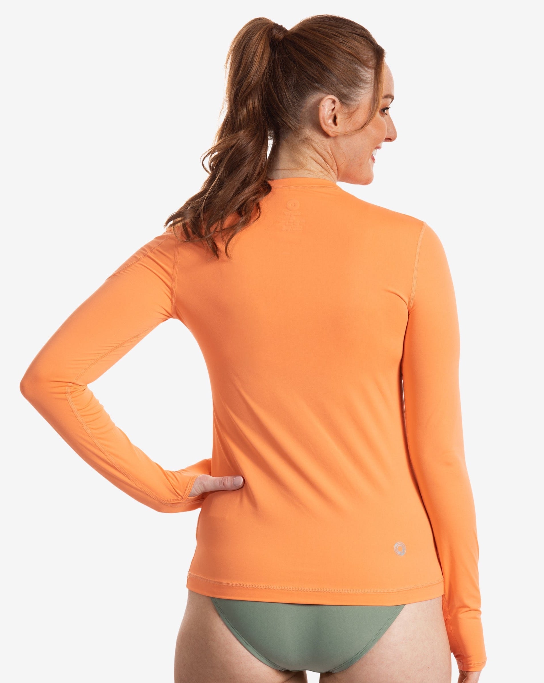 We call this UV shirt the 24/7 because you can practically live in it! One of our best sellers, it’s a multi-functional UPF 50 protection staple that can be worn alone, as a base layer, sun shirt, swim shirt, rash guard or beach cover-up. This long sleeve sun shirt features BloqUV BloqTek™, sun protective fabrics with advanced sun protection technology in classic style with comfort and freedom of movement. Keeps you cool and is perfect for running, biking, swimming, paddle boarding, boating, fishing, skiing, tennis, pickle ball, golf, strolling the beach or lounging by the pool.
