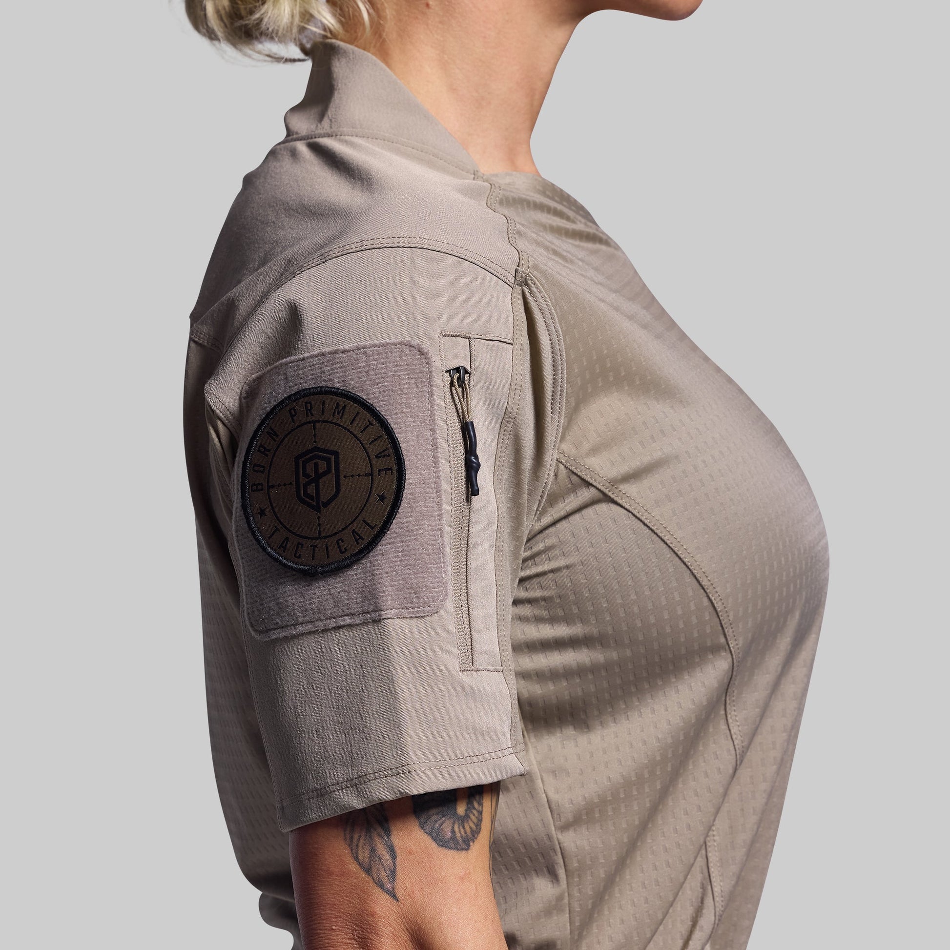 Designed with abrasion-resistant stretch fabric at the shoulders and arms, it offers durability and mobility when you're pushing your limits. Ventilated fabric on the chest and back provides breathability, while BP Shield technology delivers superior moisture-wicking, anti-odor, and UVA/UVB protection to keep you cool and focused in any environment. The shallow V-neck increases range of motion, and side zippered arm pockets with Velcro patches ensure your gear is always within reach.