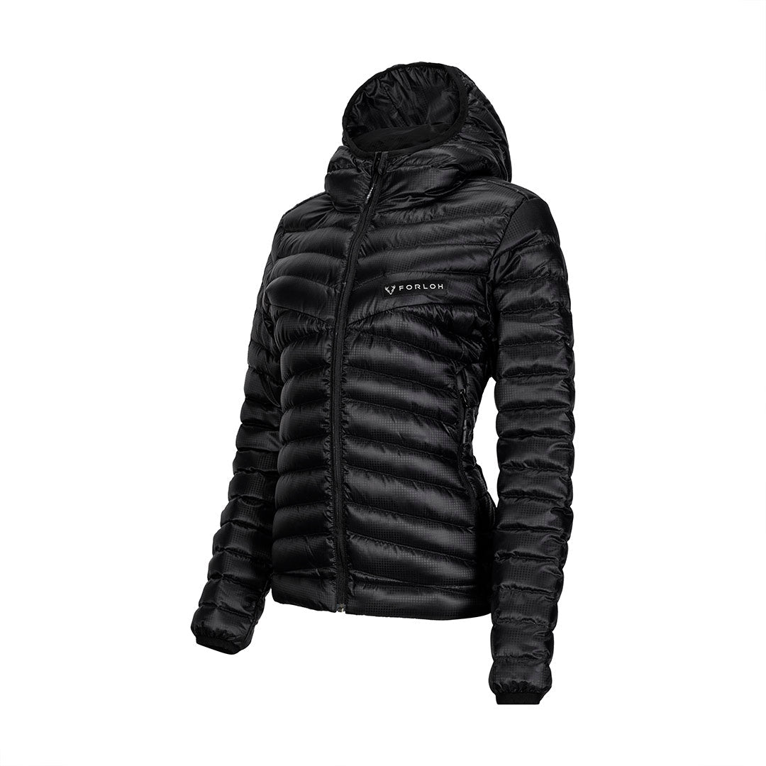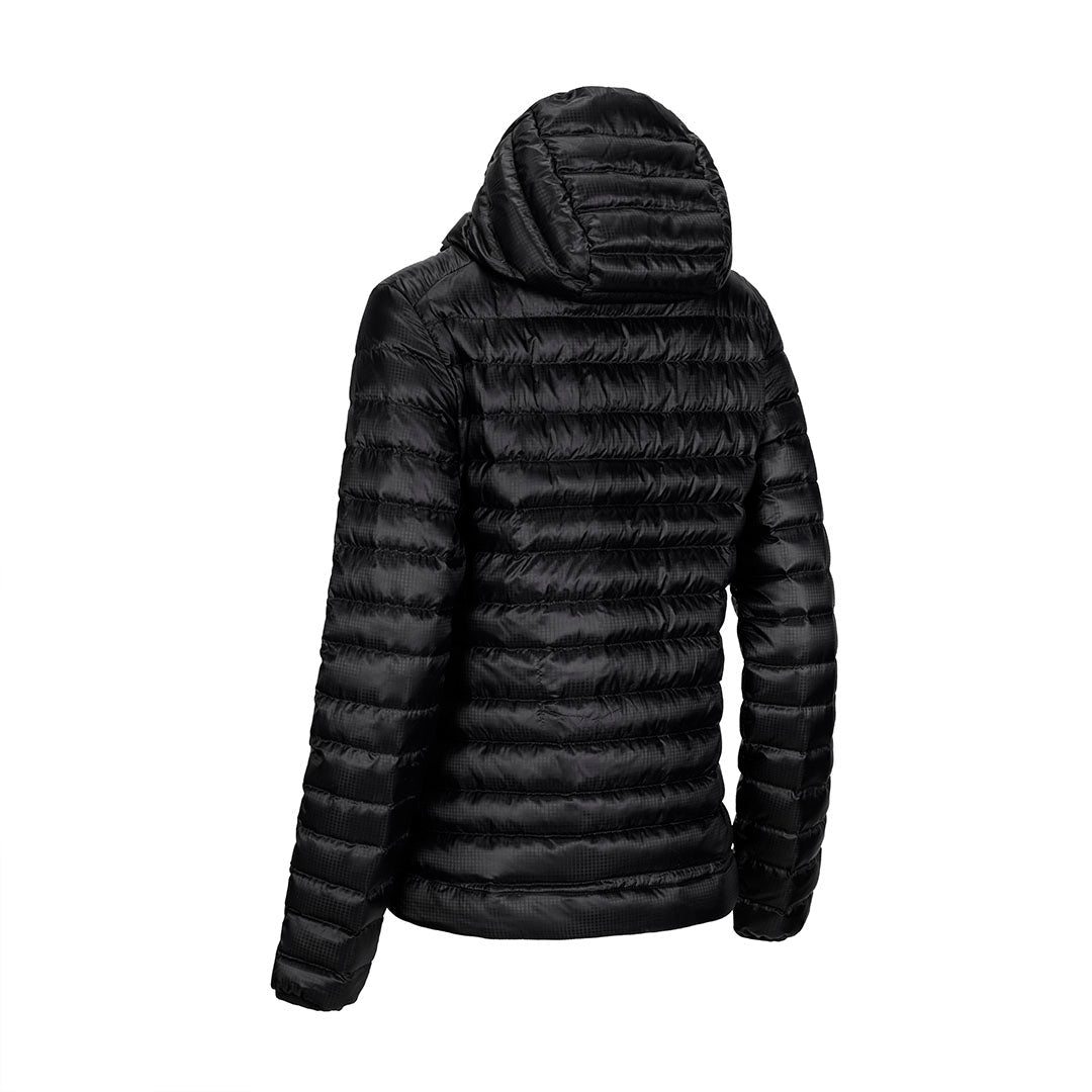 The ThermoNeutral Women's Down Jacket with a Hood effectively keeps rain out while allowing condensed and evaporated moisture to escape. This design keeps you dry and comfortable, helping to regulate your core temperature whether you’re resting or moving vigorously.