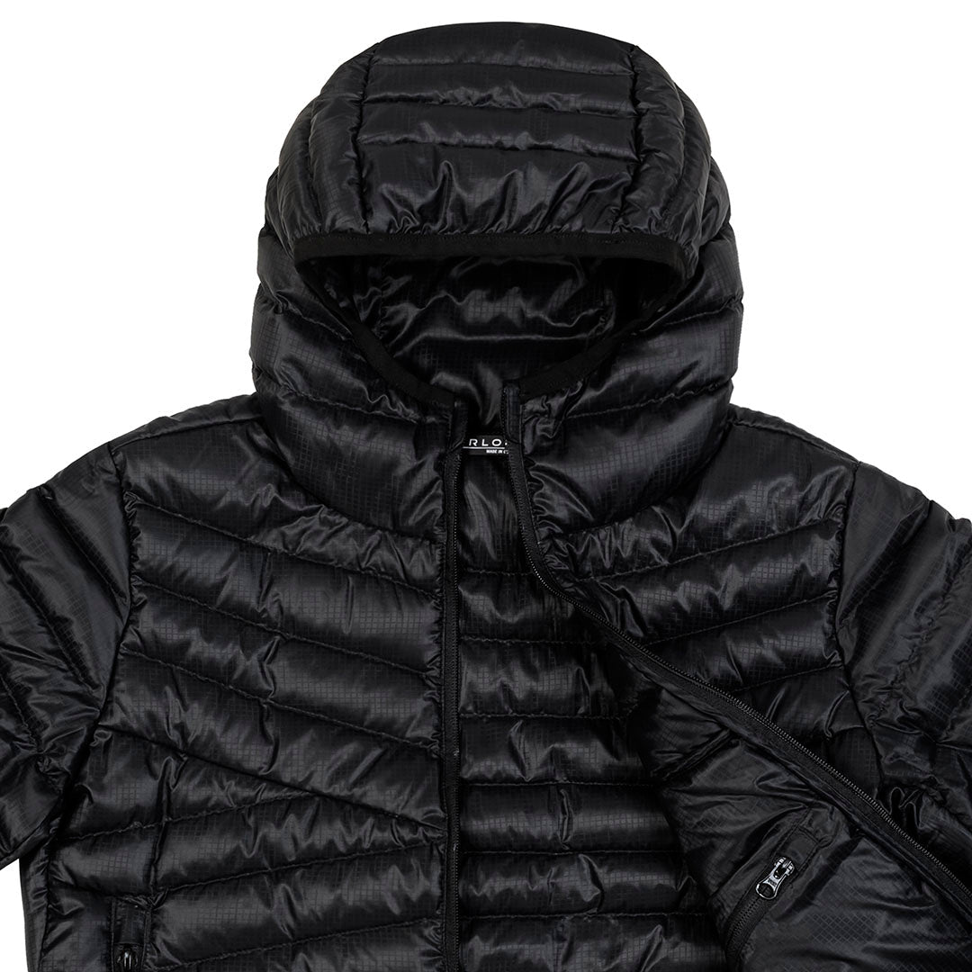 Every aspect of this women's hooded down jacket, from design to materials, is crafted in the USA. Our organic RDS duck down is sourced from a trusted Amish farming partner in Indiana, ensuring quality and ethical practices every step of the way.
