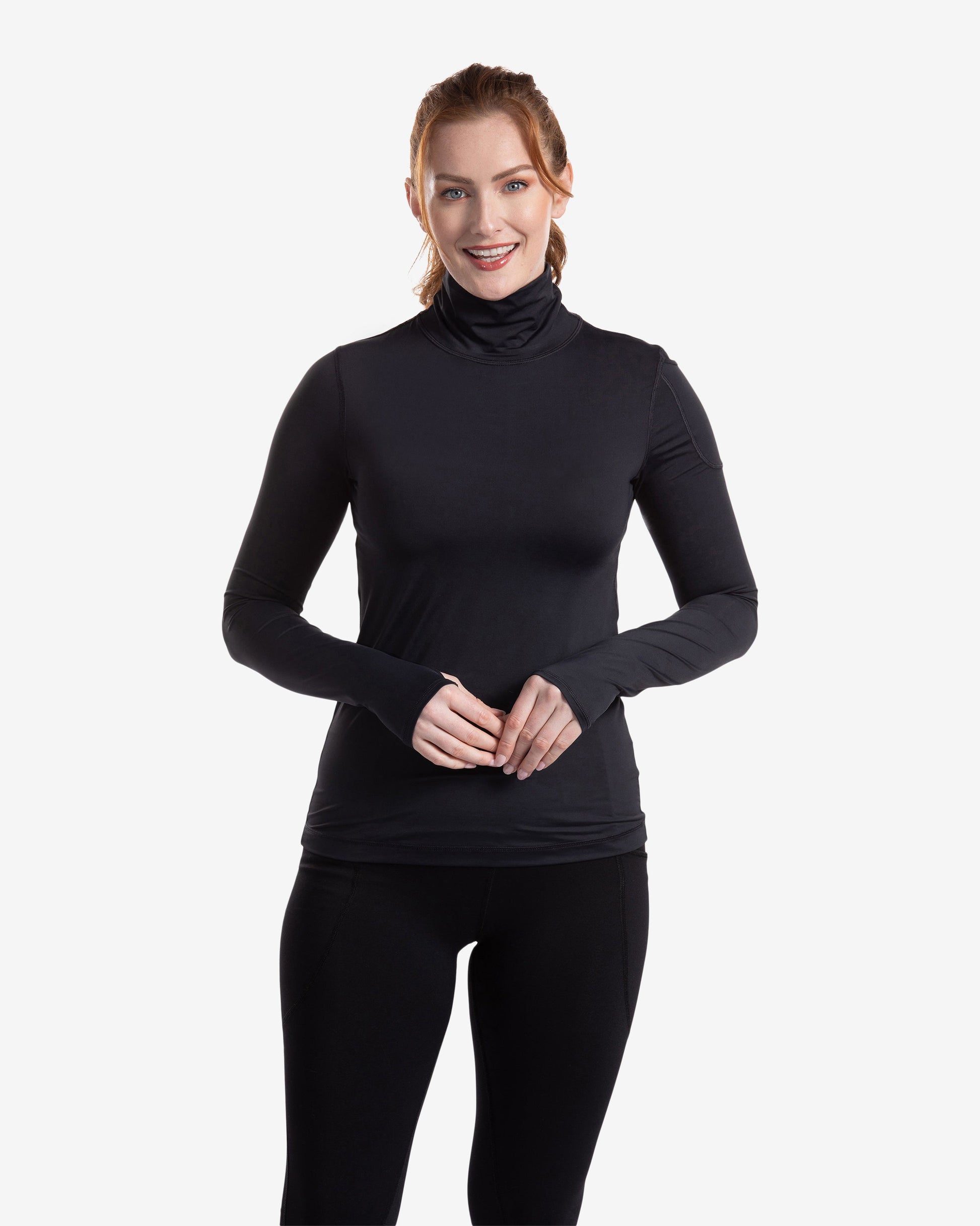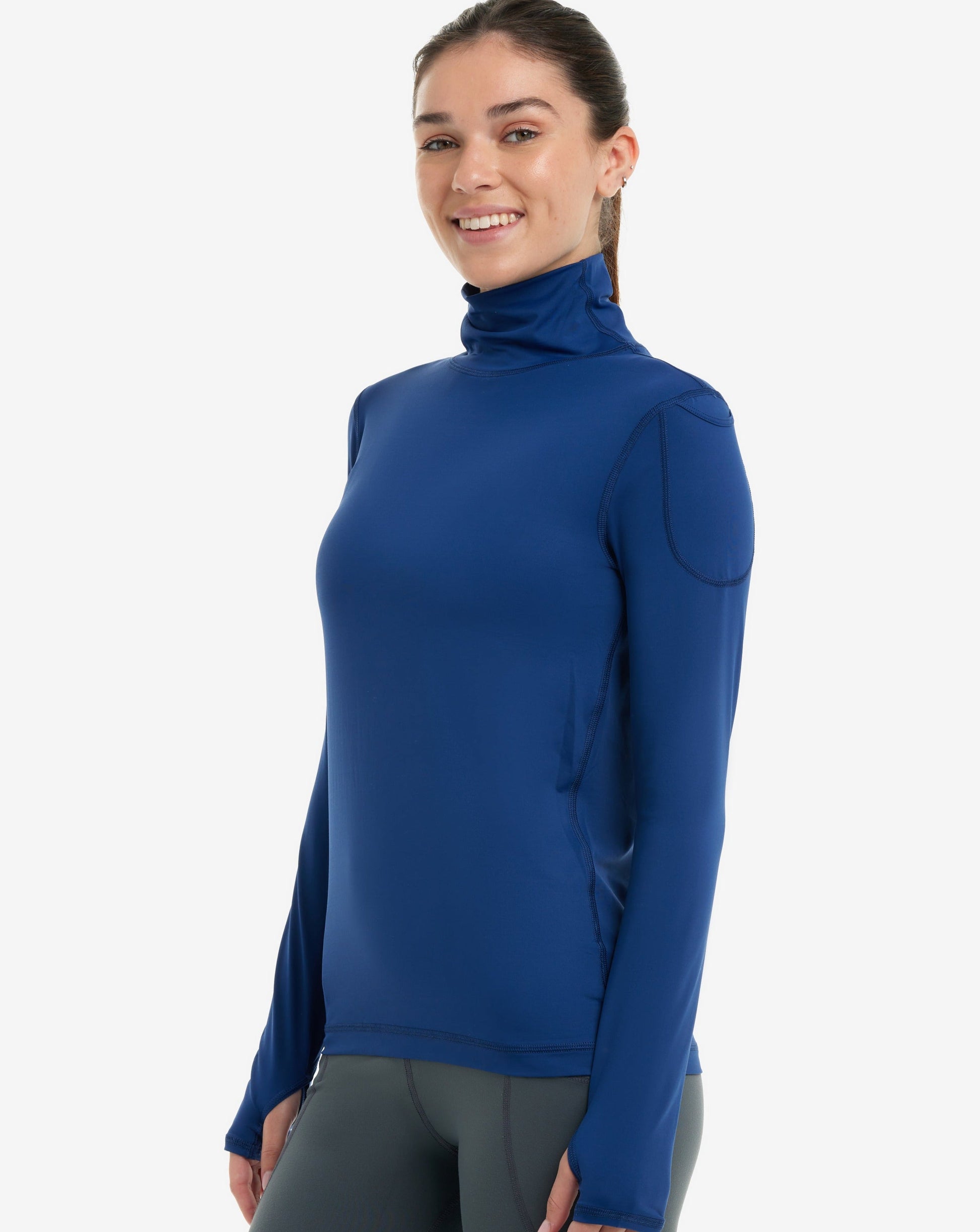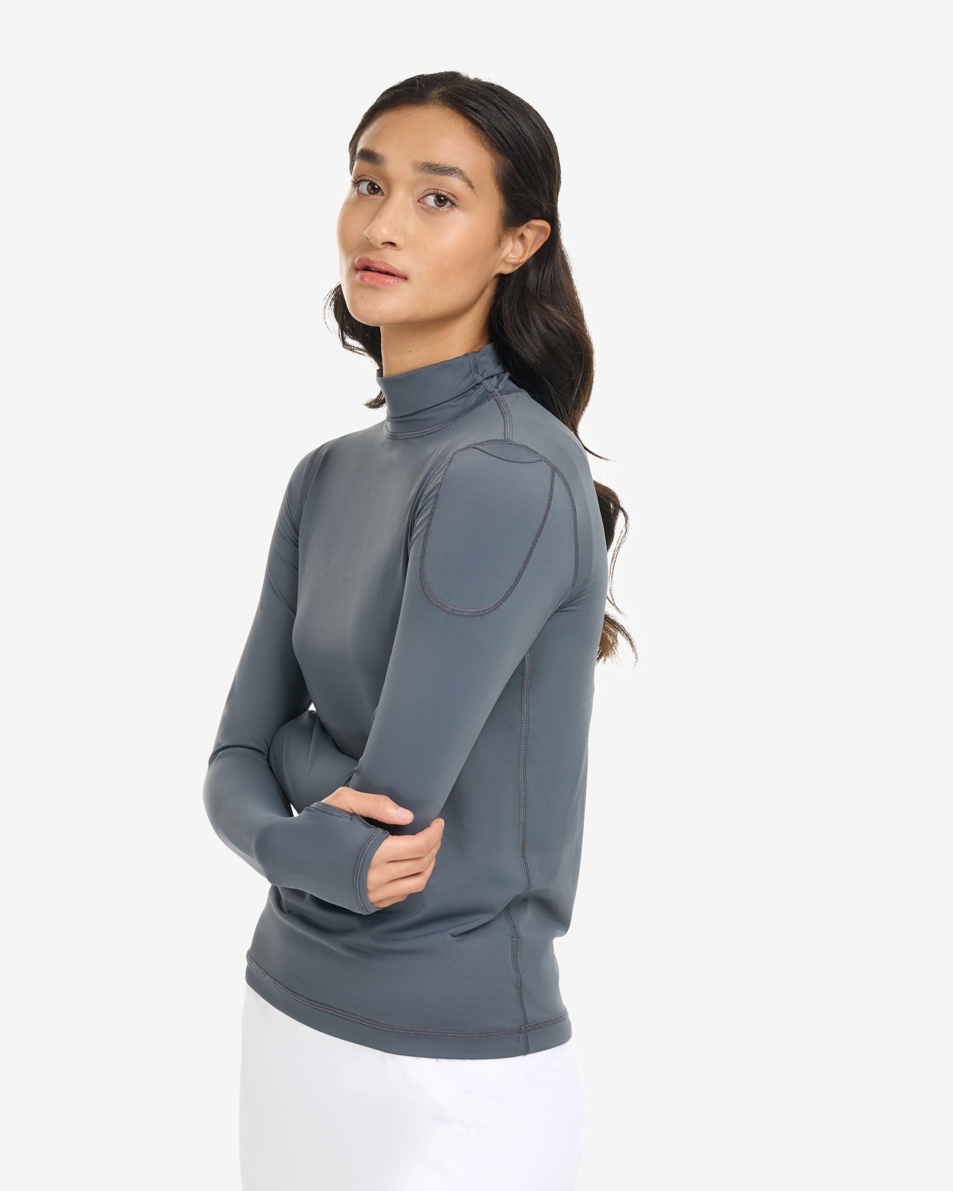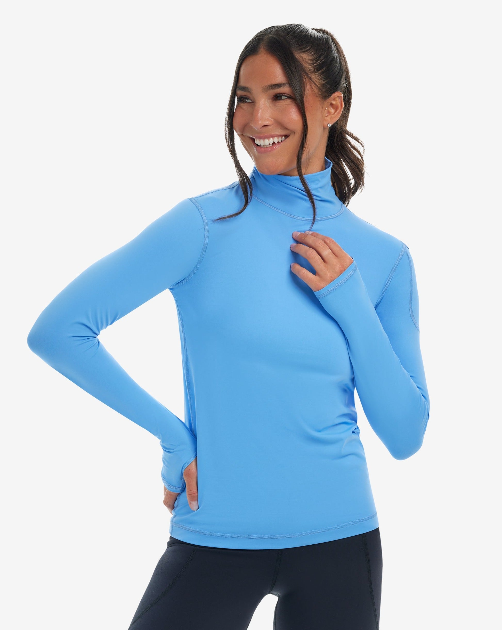 The BloqUV sun protective, long sleeve turtleneck for women offers excellent high neck coverage for all outdoor activities, ensuring UPF 50+ protection. This versatile sun protective top is suitable for year-round wear. It can be used as a shirt to provide complete SPF protection from the neck to the hands while keeping you cool and comfortable. During winter, you can layer it under athletic wear or a blazer for a stylish, streamlined look. This piece is a perfect addition to any travel wardrobe, suitable for various activities such as skiing, running, walking, swimming, horseback riding, fishing, boating, biking, paddle boarding, tennis, golf, or gallery hopping.