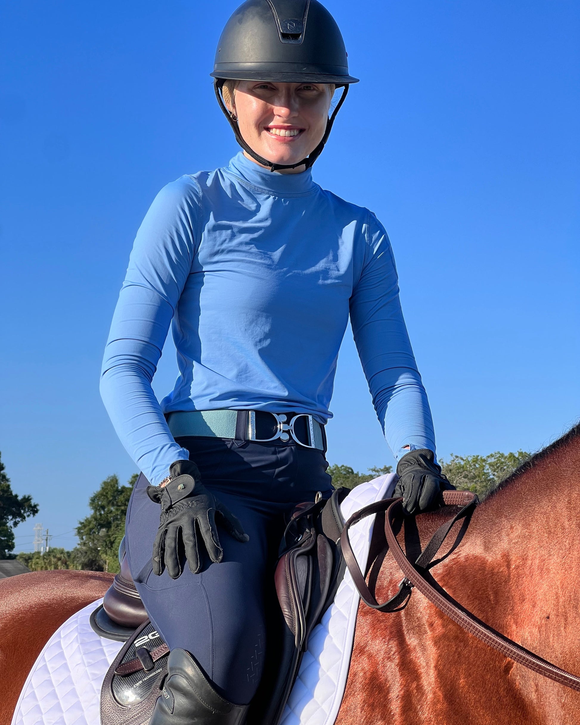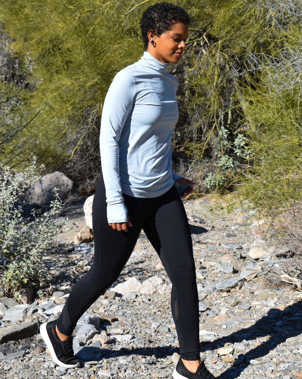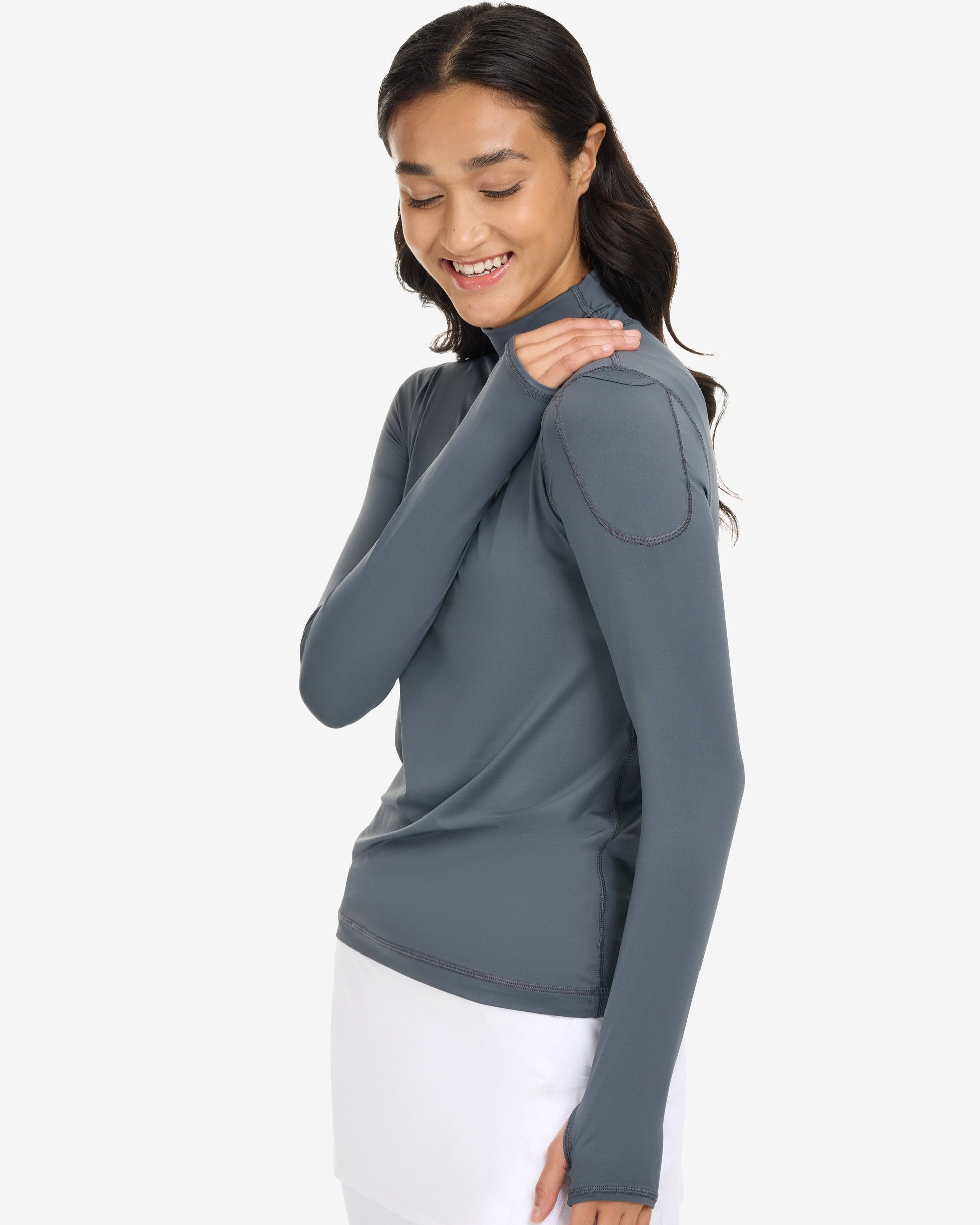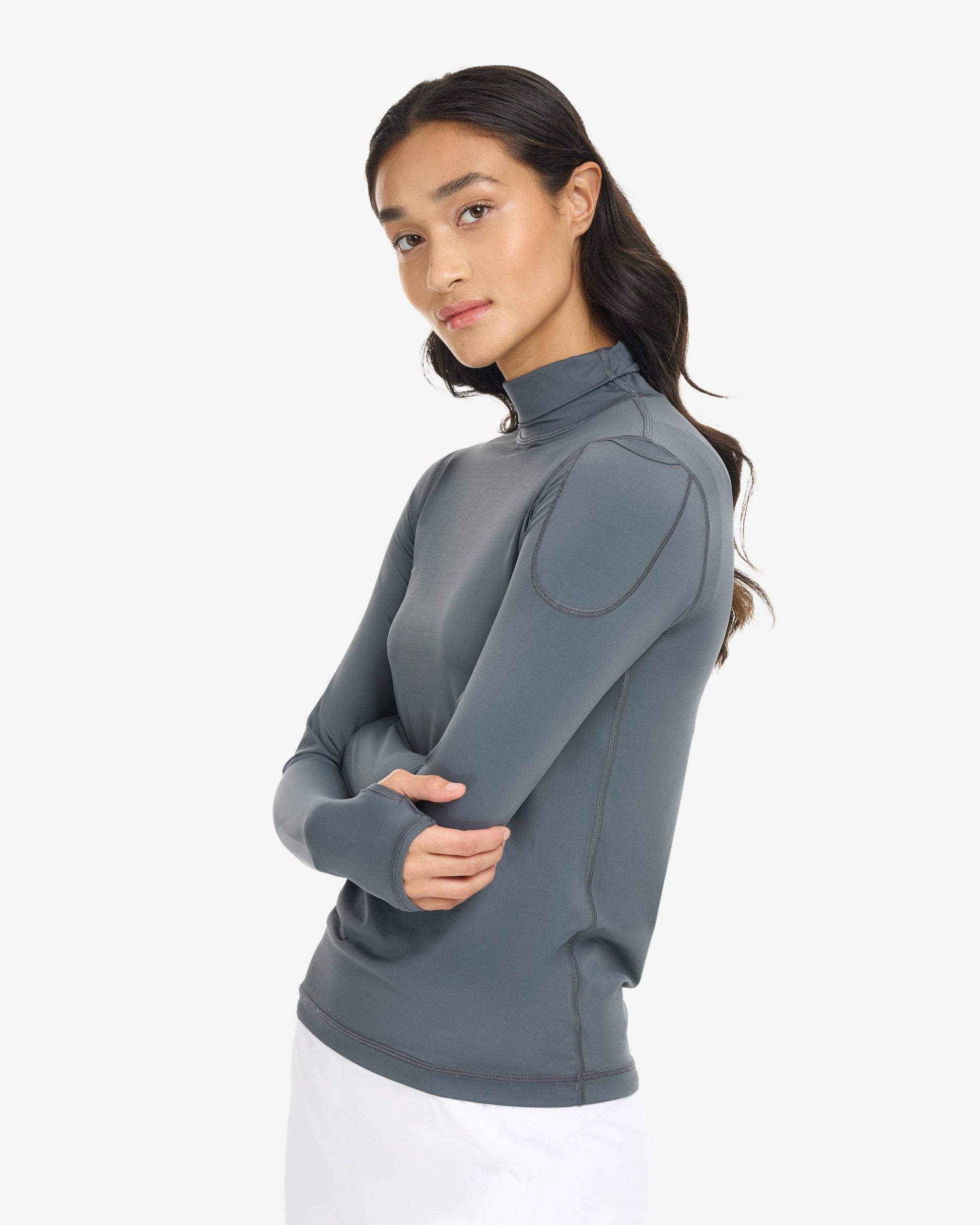 The BloqUV sun protective, long sleeve turtleneck for women offers excellent high neck coverage for all outdoor activities, ensuring UPF 50+ protection. This versatile sun protective top is suitable for year-round wear. It can be used as a shirt to provide complete SPF protection from the neck to the hands while keeping you cool and comfortable. During winter, you can layer it under athletic wear or a blazer for a stylish, streamlined look. This piece is a perfect addition to any travel wardrobe, suitable for various activities such as skiing, running, walking, swimming, horseback riding, fishing, boating, biking, paddle boarding, tennis, golf, or gallery hopping.