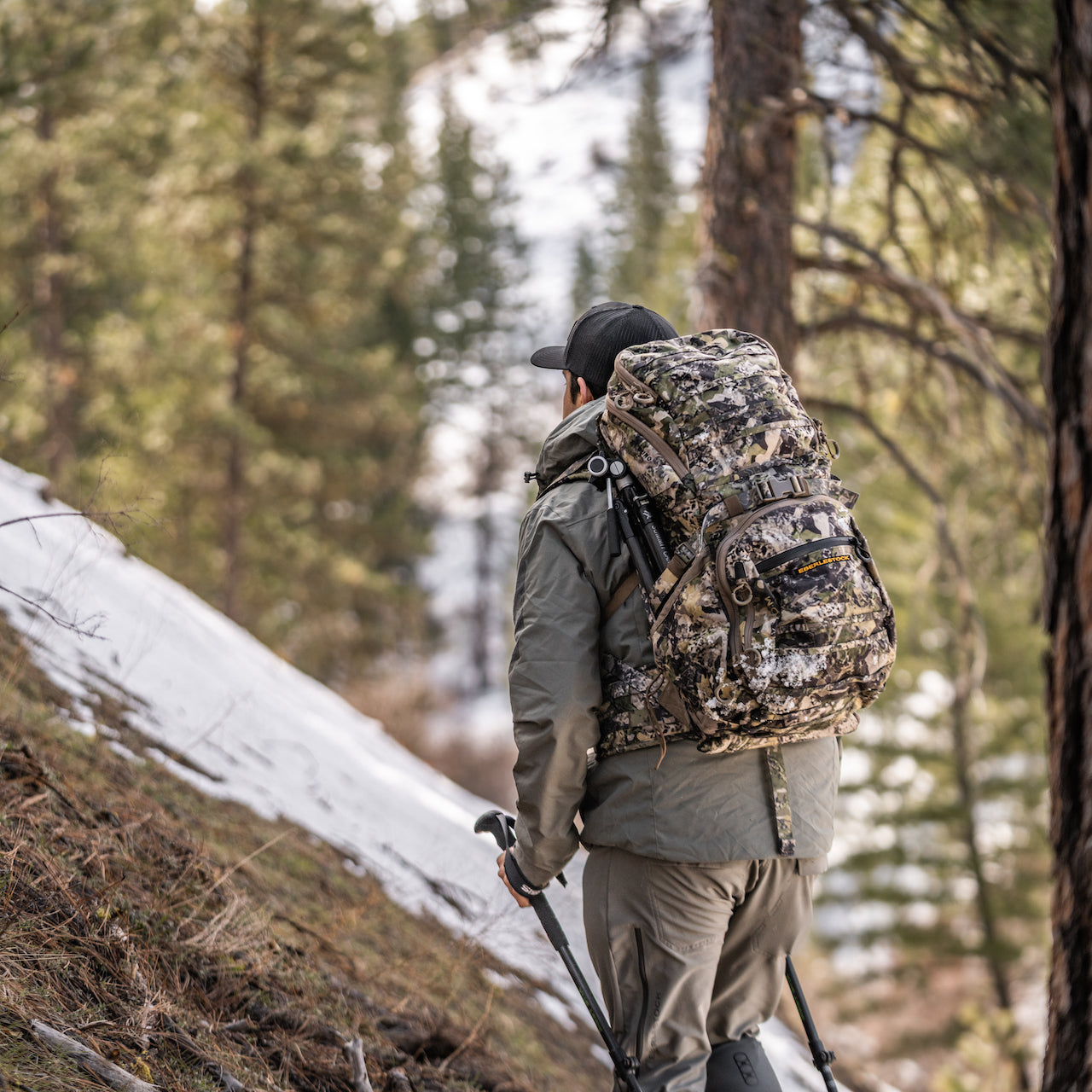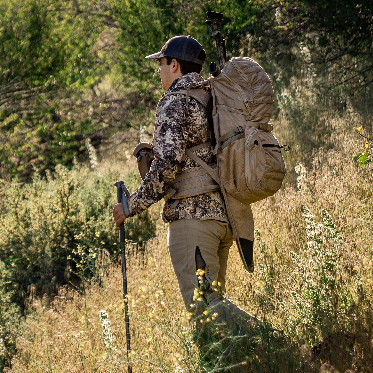 The X1 Euro™ features excellent accessibility to the whole interior of the pack through top-loading and lower front-loading zippers. A fold-down shelf allows you to use the upper and lower chambers independently or as a combined space. Generous storage pockets keep your smaller items organized and a full-width rifle scabbard keeps your hands free. Lightweight MOLLE-10 webbing provides mounting options for a variety of gear and accessories.