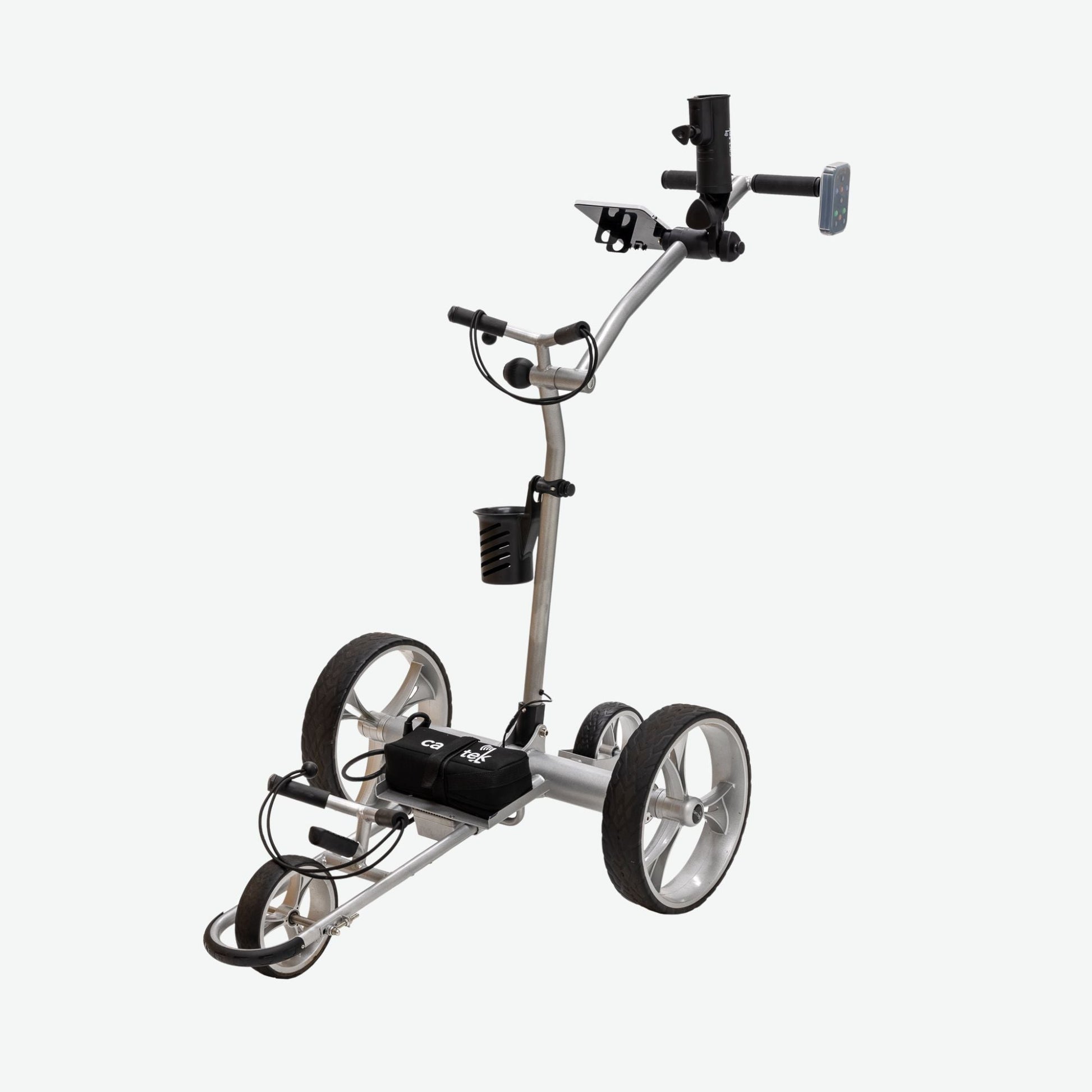 - Simple three-step daily setup: Unfold the caddy, load your golf bag, plug in the battery and hit the links!