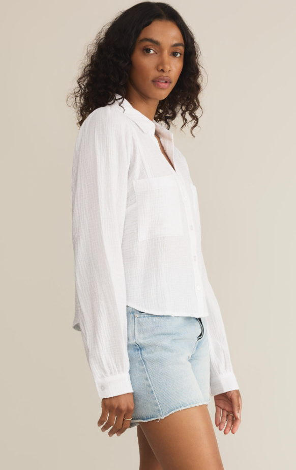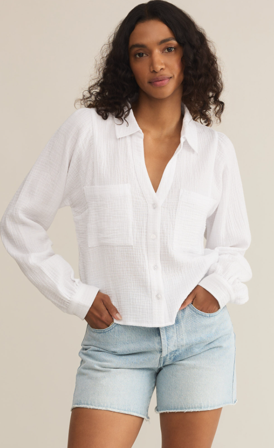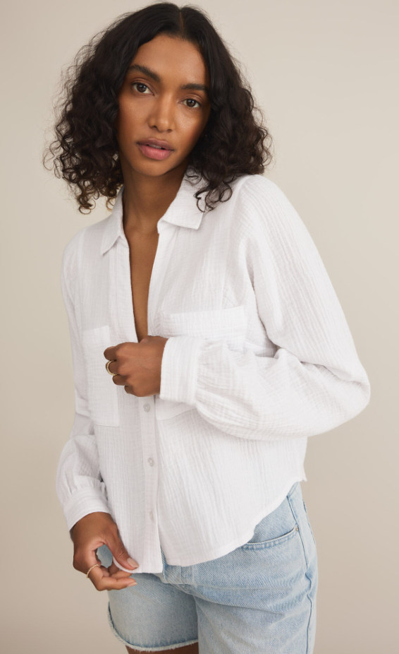 Introducing the Z Supply Campo Button Up Gauze Top! Made with lightweight gauze material, this top is perfect for warm weather. The button-up design adds a touch of class and can be worn open or closed. Look effortlessly chic and feel the breeze in this must-have top.