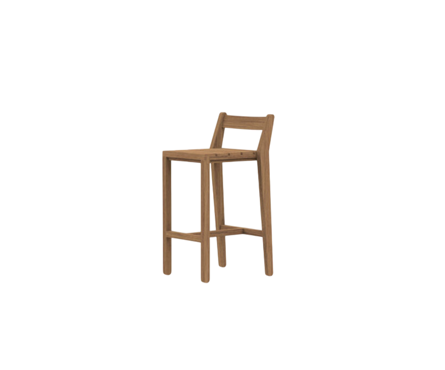 The Zania 050 Bar Stool is part of a versatile collection designed for outdoor use, offering a contemporary aesthetic that fits effortlessly into contract spaces such as hotels, restaurants, and a variety of other settings. With its compact dimensions and practical functionality, this bar stool is perfect for spaces that require both style and space efficiency. Crafted from FSC-certified Iroko wood, known for its warm color and exceptional durability, the Zania Bar Stool is built to withstand moisture and outdoor conditions. The design features slatted surfaces and legs with rounded edges, reflecting the modern and clean lines of the entire Zania collection. Whether paired with the Zania Dining Table or used independently, this bar stool brings a blend of sophistication and durability to any outdoor or commercial space.